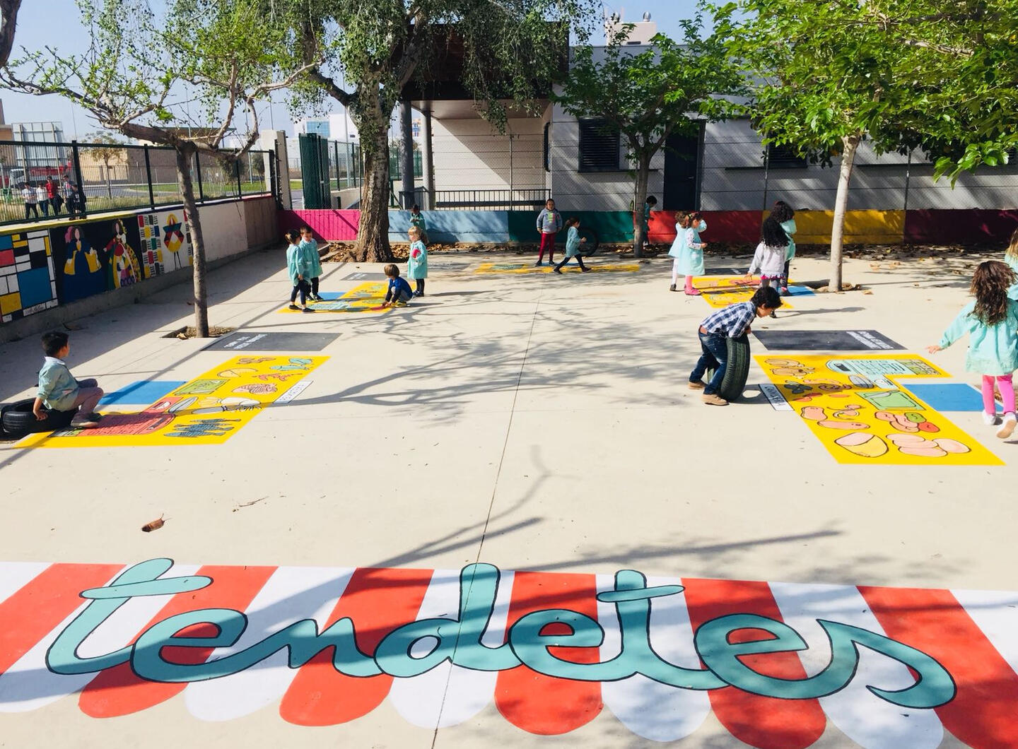 Es tracta de pintar a terra diferents jocs simbòlics com mercats, cases, pàrquings de cotxes, restaurants, una classe d'escola o qualsevol espai que propose l'alumnat. L'objectiu és democratitzar l'espai al pati i fomentar el joc creatiu i cooperatiu per a que tot l'alumnat es senta integrat en el moment de l'esbarjo i trobe el seu lloc al pati, que sol estar envaït pel futbol que genera problemes de convivència i provoca la segregació de l'alumnat. I és que, en aquest joc de baló tan alineat a l'univers masculí i al capitalisme, i per tant, a la competitivitat es sol deixar fóra a l'alumnat que no compleix les preferències associades al seu rol de gènere, ja que les xiquetes a qui els agraden els esports no solen ser admeses en el joc i els xiquets que tenen altres preferències de joc, se'ls deixa fora del grup.